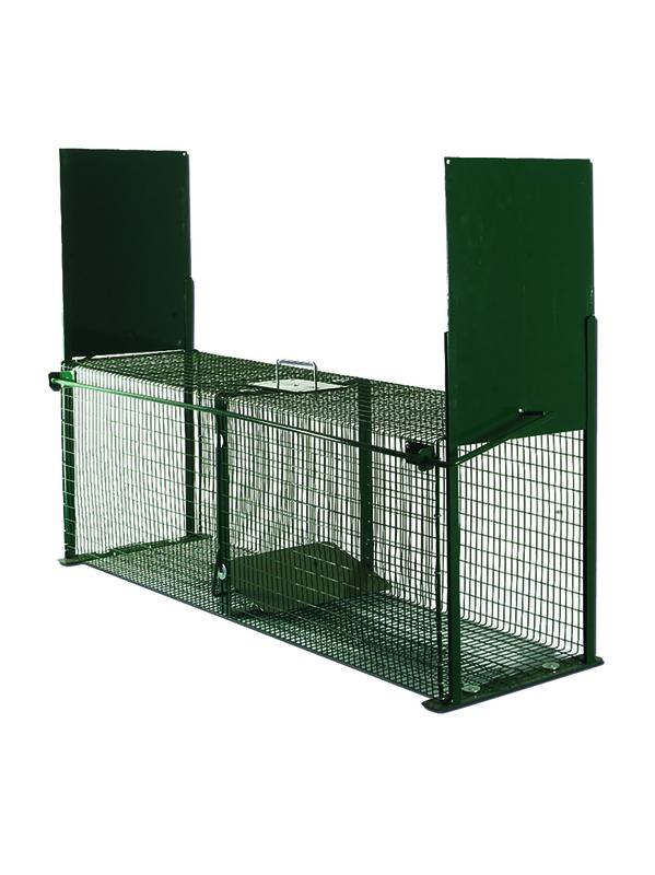 Netkooi met een tegengewicht. Het wordt gebruikt om marters te vangen. Het frame is verstevigd en het gaas is gelast. Gegalvaniseerde onderdelen.