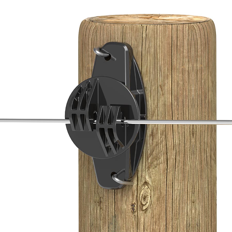 Ringisolator met unieke voordelen ten opzichte van de bekende zwarte ringisolator. Veel sterker door toepassing van een nieuwe techniek en veel robuuster door de metalen kern. Kans op kortsluiting is nihil door dit ontwerp. Geschikt voor (kunststof)draad in combinatie met houten palen. Paard