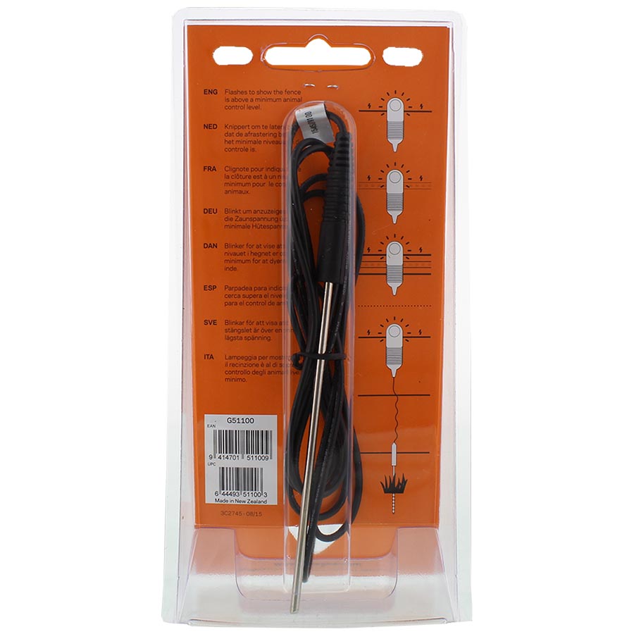 Het afrasteringscontrole lampje wordt aan het einde van de afrastering gemonteerd en geeft bij iedere impuls van het schrikdraadapparaat een felle lichtflits. zodat u ‘s avonds kunt zien of de afrastering nog in orde is. 0
