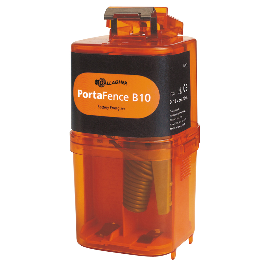 Uitermate handig batterij-apparaat. gemakkelijk te plaatsen en aan te sluiten. Geschikt voor korte afrasteringen tot 1 km. Werkt op 6x1.5V Alkaline D-cell (LR20) batterijen (niet bijgesloten). Werkt ook op 12V accu. B10/12V adapter kit beschikbaar (004747). Koe