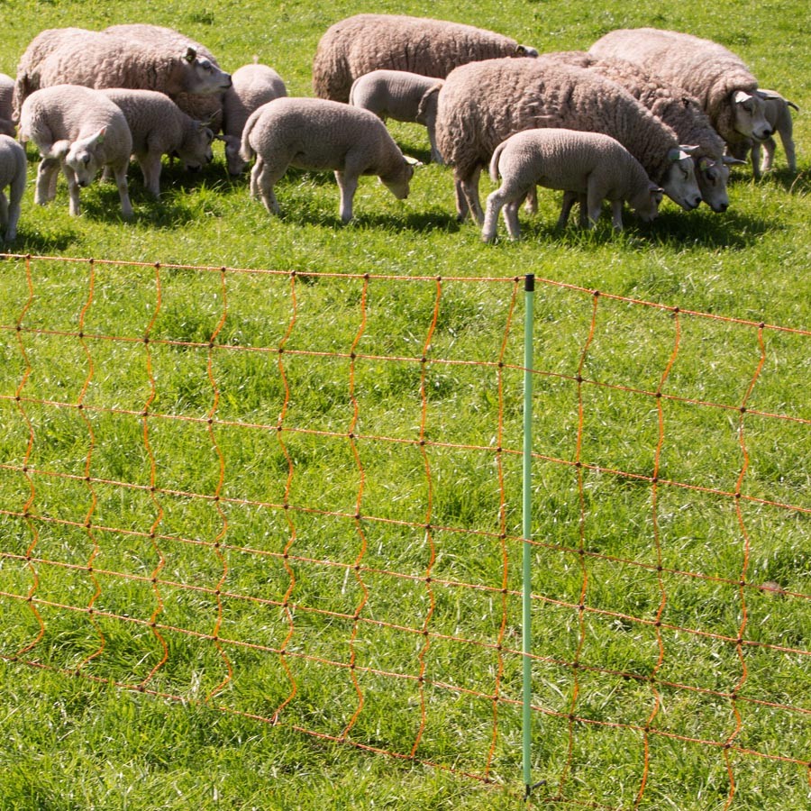 Compleet en gebruiksvriendelijk verplaatsbaar afrasteringsnet voor schapen en lammeren. Tevens geschikt als begrenzing bij sloten. zodat zelfs pasgeboren lammeren met een optimale veiligheid kunnen meeweiden. Lengte: 50m. Inclusief 14 palen met enkele pen die in het net gemonteerd zijn. Meerdere netten zijn gemakkelijk met elkaar te verbinden. Schaap