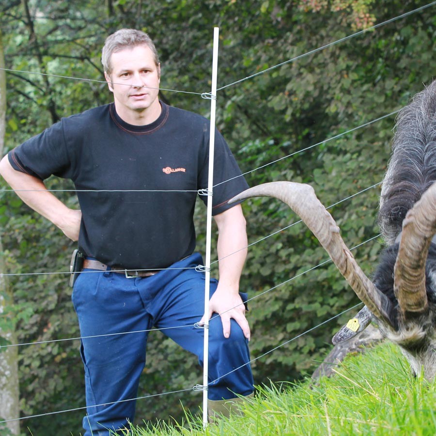 Glasfiberpaal ø10mm voor semi-permanente flexibele afrasteringen met kunststofdraad of 1.6mm Gallagher draad. Te gebruiken i.c.m. Clip art. 018300 (25). Koe