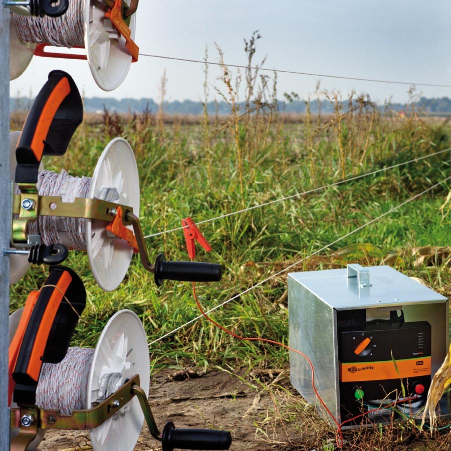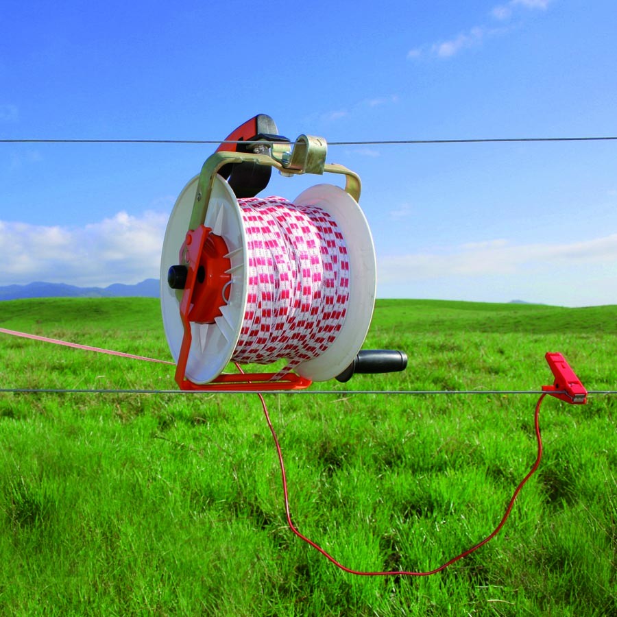Haspel met blokkeringspal. Voorzien van geïsoleerde robuuste handgreep. De haspel heeft een extra grote binnendiameter waardoor snel draad opgenomen kan worden. Geschikt voor maximaal 500 meter Vidoflex. 200 meter lint of 200 meter cord. Kan bevestigd worden aan de haspelhoekpalen (art.nr. 022014/022236). Paard