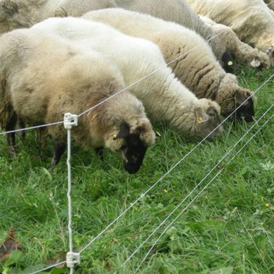Zeer stevige. lichtgewicht veerstalen paal voorzien van vier verstelbare isolatoren. Maximale afrasteringshoogte 87.5 cm. Met 10cm dubbele pen voor stabiele bevestiging in de grond. Witte isolerende coating voor goede zichtbaarheid en ter voorkoming van kortsluiting. Koe