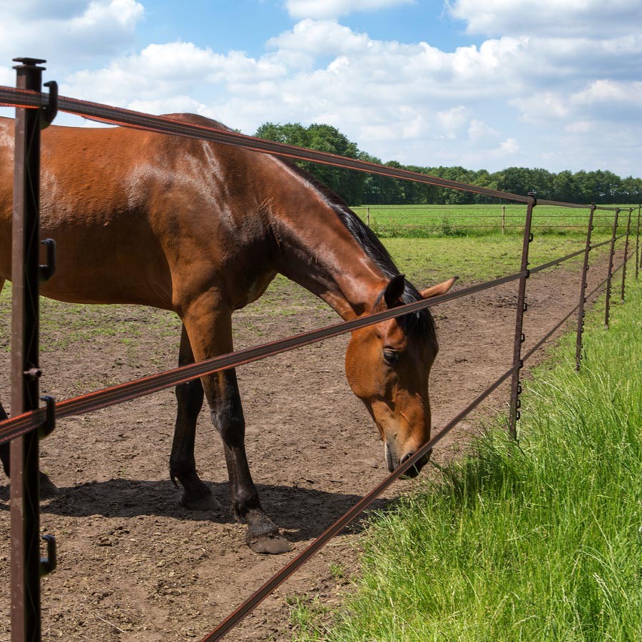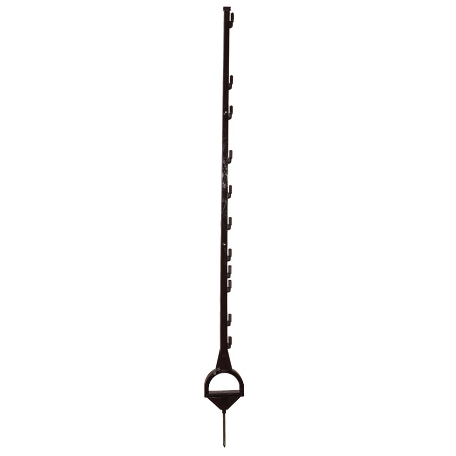 Unieke en duurzame paal van 1.55m voor semi-permanente paardenafrasteringen. Eenvoudig te plaatsen door de handige stijgbeugelvoet. Met 11 genummerde draadhouders. geschikt voor lint tot 20mm. cord en kunststofdraad. Het unieke twist & lock systeem garandeert een eenvoudige en solide bevestiging van geleiders tot 1.35m hoogte.