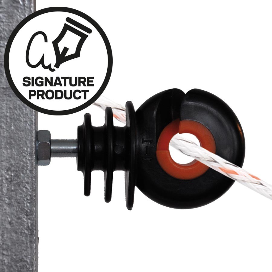 Zeer solide schroefisolator met metalen kern. Door de oranje ring is de afstand tussen de kern en de geleider overal gelijk. waardoor kortsluiting nihil is. Geschikt voor de toepassing van (kunststof) draad en cord op een metalen paal. zoals de haspelhoekpaal (art.nr. 022014. 022236). (Draadlengte 25mm M6 incl. 2x moer. lengte totaal 33mm) Productgarantie: 2 jaar. Wild